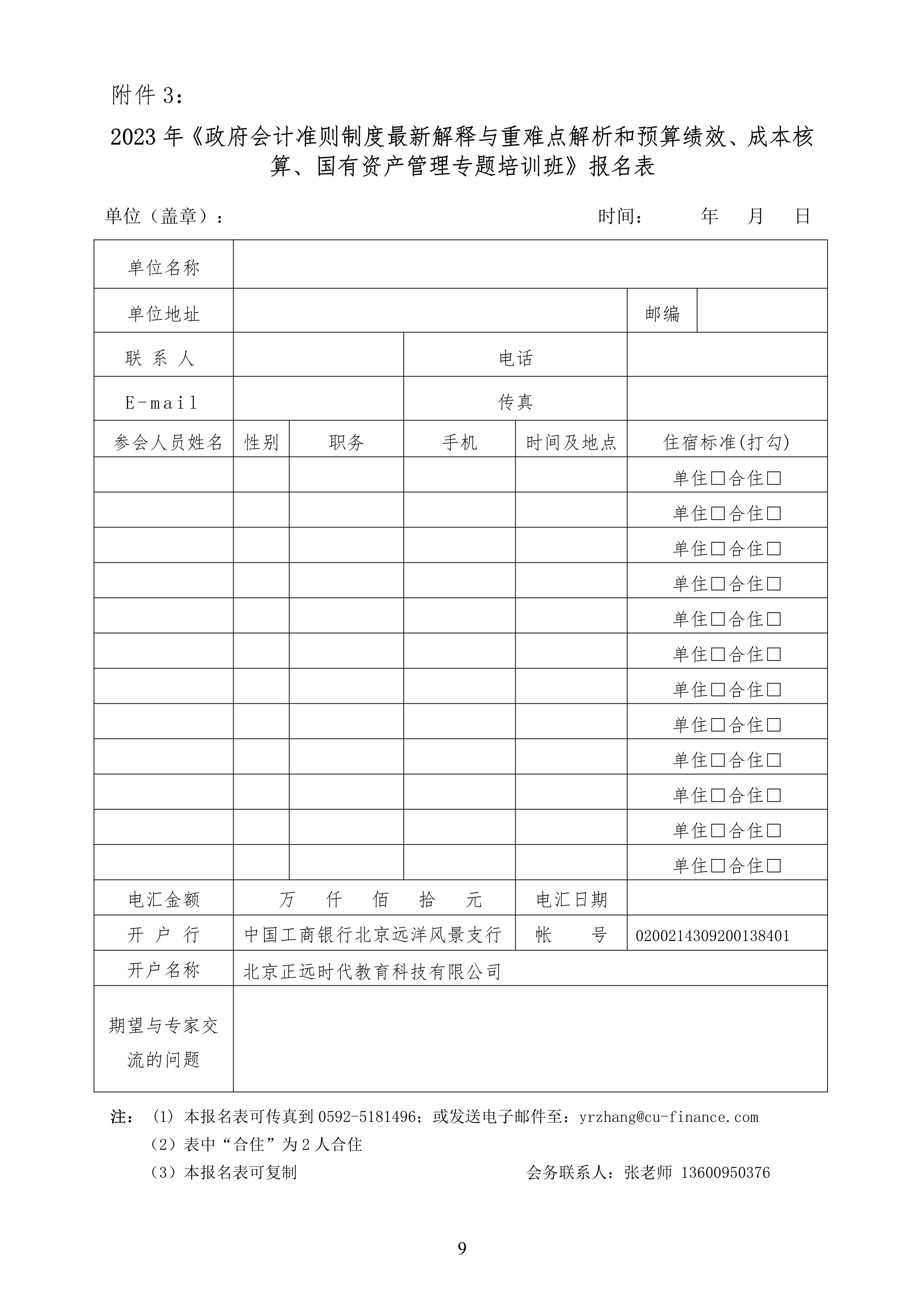 附件:2023年《政府會計準則制度最新解釋與重難點解析和預算績效成本核算國有資產(chǎn)管理專題培訓班》報名表
