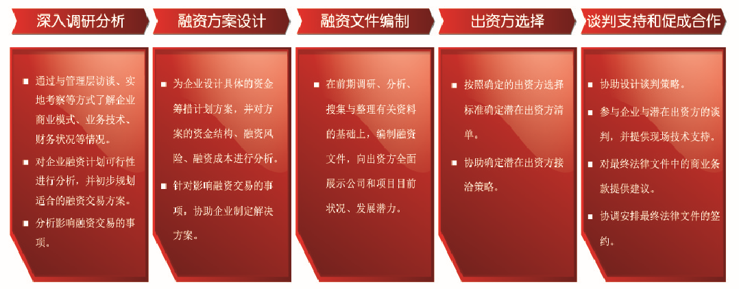 華夏經(jīng)緯以豐富的專業(yè)知識和融資咨詢經(jīng)驗為企業(yè)提供融資方面的咨詢服務(wù),利用我們對金融市場融資領(lǐng)域政策走向的把握和市場變化的分析研究,發(fā)揮與各類金融機(jī)構(gòu)良好合作關(guān)系的優(yōu)勢,協(xié)助企業(yè)實現(xiàn)融資目標(biāo),提升企業(yè)的價值創(chuàng)造能力。